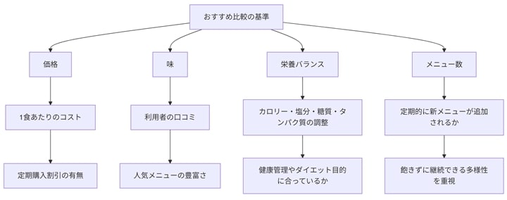 おすすめ比較の基準(価格・味・栄養バランス・メニュー数)