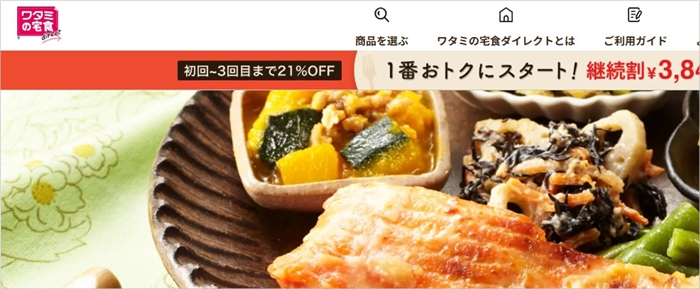 ワタミの宅食ダイレクト | 初回購入で特別価格 | 和食中心で食べやすく、年配層にも安心 |
