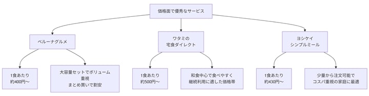 とくに以下のサービスは1食あたりの価格が抑えられており、長期的な利用にも向いています。