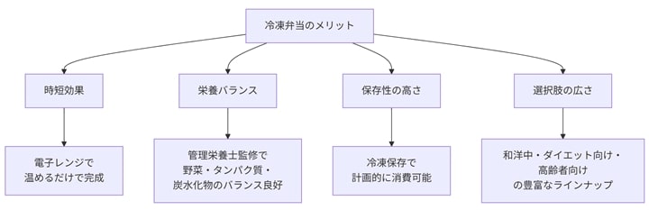 冷凍弁当には多くの利点があります。とくに、時間がない中でもしっかりとした食事を取れる点は大きな魅力。ここでは、利用者が実感しやすい代表的なメリットを整理します。